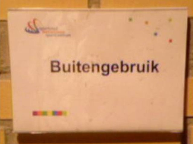 Ik wilde me omkleden om te gaan zwemmen in Sportstad Heerenveen, maar moest noodgedwongen deze kleedkamer gebruiken. Liever had ik een kleedkamer gehad voor binnengebruik, maar die waren helaas buiten gebruik.